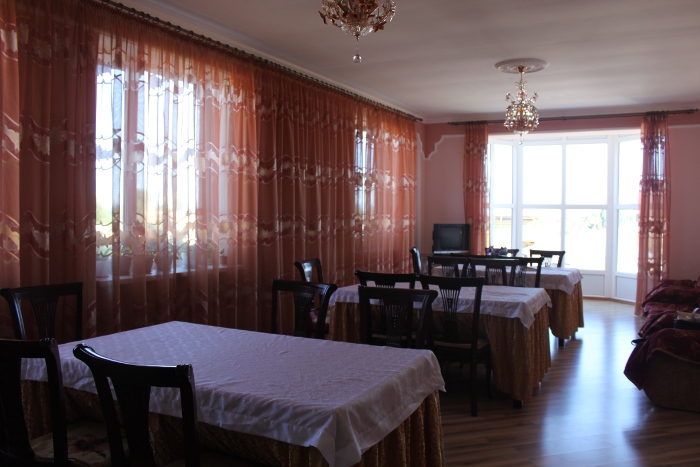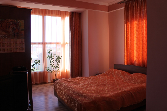Люкс включает две комнаты: спальную и холл. В спальне есть кровати, трельяж, две тумбы, балкон, душевая кабинка с санузлом. Вторая комната: мягкая мебель - раскладной диван, два кресла, гостиный гарнитур, тв с 53 каналами и холодильник. Стоимость люкса в летний сезон от 2500 до 3000 сом в сутки за номер Вместительность номера до 6 человек!