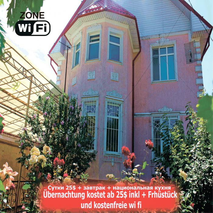 Gasthof "Nasir und Familie" ist ein gemuetliches Gasthaus im Zentrum von Bischkek. Übernachtung kostet ab 25$ inkl, früstück und kostenfreie Wi Fi, einheimische Küche.