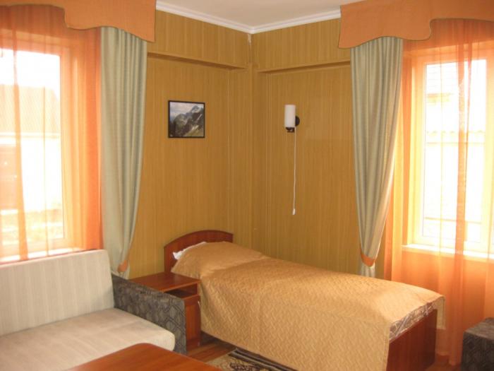 Предоставляются услуги по ежедневной уборке номеров, смене постельного белья, прачечной, транспортные услуги, туристические услуги, и прочее. На территории имеется охраняемая стоянка, IP телефония, Спутниковый Интернет (wi-fi), летнее кафе с национальной кухней.