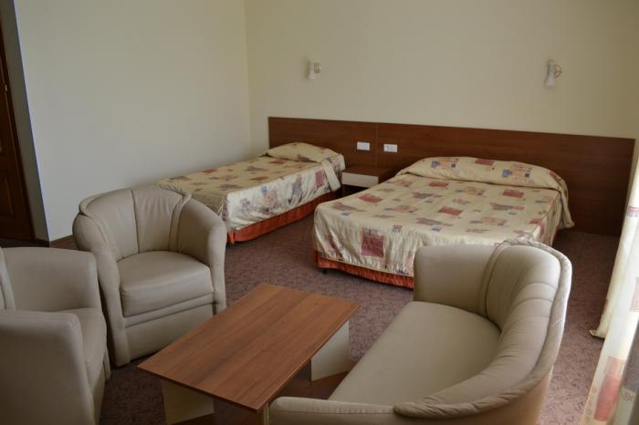 Отель Роял Бич находится в с. Чок Тал. Отель расположен на берегу бухты, соответственно вода в у нас всегда тёплая. Мы предлагаем Вам комфортабельные 1,2,3,4 местные полулюксовые и люксовые номера в 3х этажном корпусе, а также в одно этажных бунгало. Так же для сдачи имеются отдельные 2х уровневые коттеджи с отдельными входами. Зонты, лежаки, стоянка бесплатные. На территории имеются бассейн, бильярд, коктейль бар, сауна на берегу озера. Мы гарантируем Вам 100% безопасность. На нашей территории отдыхают только наши клиенты. Расстояние до пляжа всего 150м.