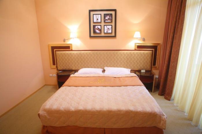 Стандарт (одноместный) - однокомнатный номер с балконом. В номере одна кровать, письменный стол, шкаф-купе, сан. узел (душ-кабина). В стоимость входит проживание, завтрак, посещение тренажерного зала.