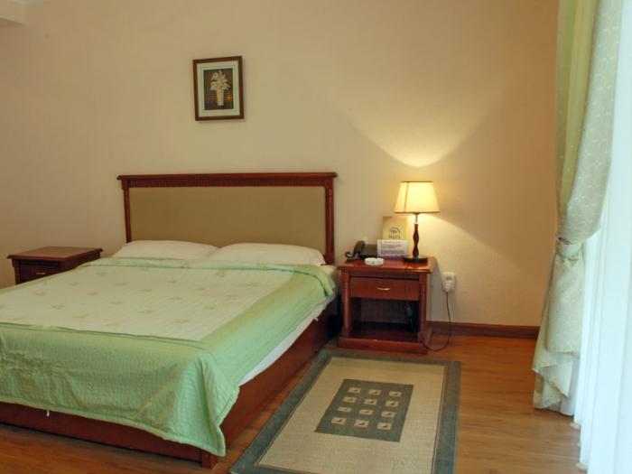 – Комната с большой двуспальной кроватью или двумя полуторными кроватями с прикроватными тумбочками, платяным шкафом, комод с зеркалом, стол со стульями