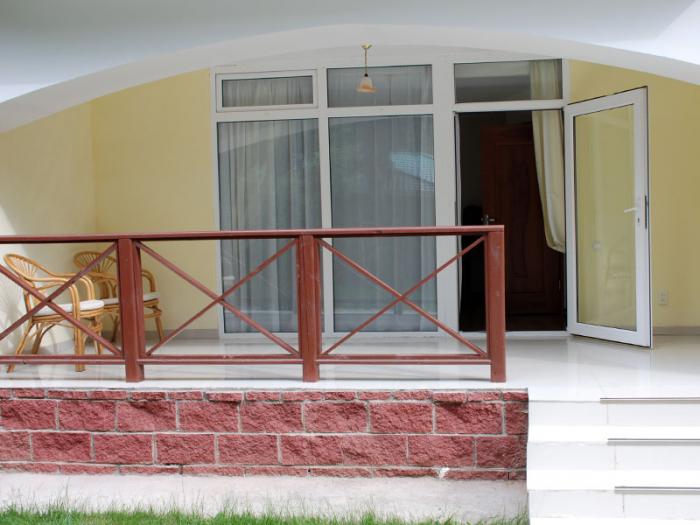 – Санузел. – Широкий балкон с плетенной мебелью. Во всех номерах: спутниковое ТВ, телефон, холодильник, отдельный санузел, регулируемое отопление (круглогодично), набор посуды для чая/кофе, чайник, фен, пляжные матрасы, пляжные полотенца, шампунь, гель для душа, мыло, зубная щетка. В стоимость номера входит: – Проживание – Питание 3-х разовое – завтрак (шведский стол), обед, ужин. В летнее время – для детей детское меню – 3 процедуры по назначению врача в SPA-центре. Уборка номера – ежедневно. Смена постельного белья – через каждые 3 дня. |