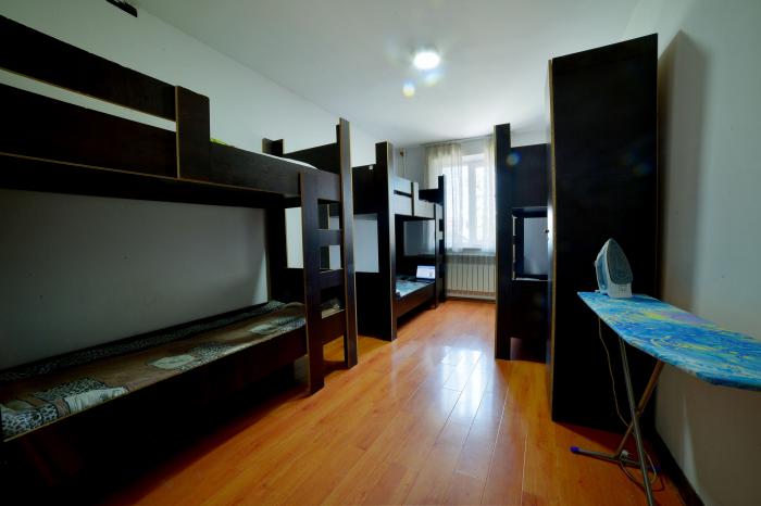 Площадь: 40 кв.м. Кровати: 3 двухярусных кровати. Мест: 6. Индивидуальные шкафчики-локеры. Чистое постельное белье.